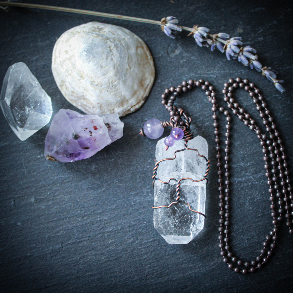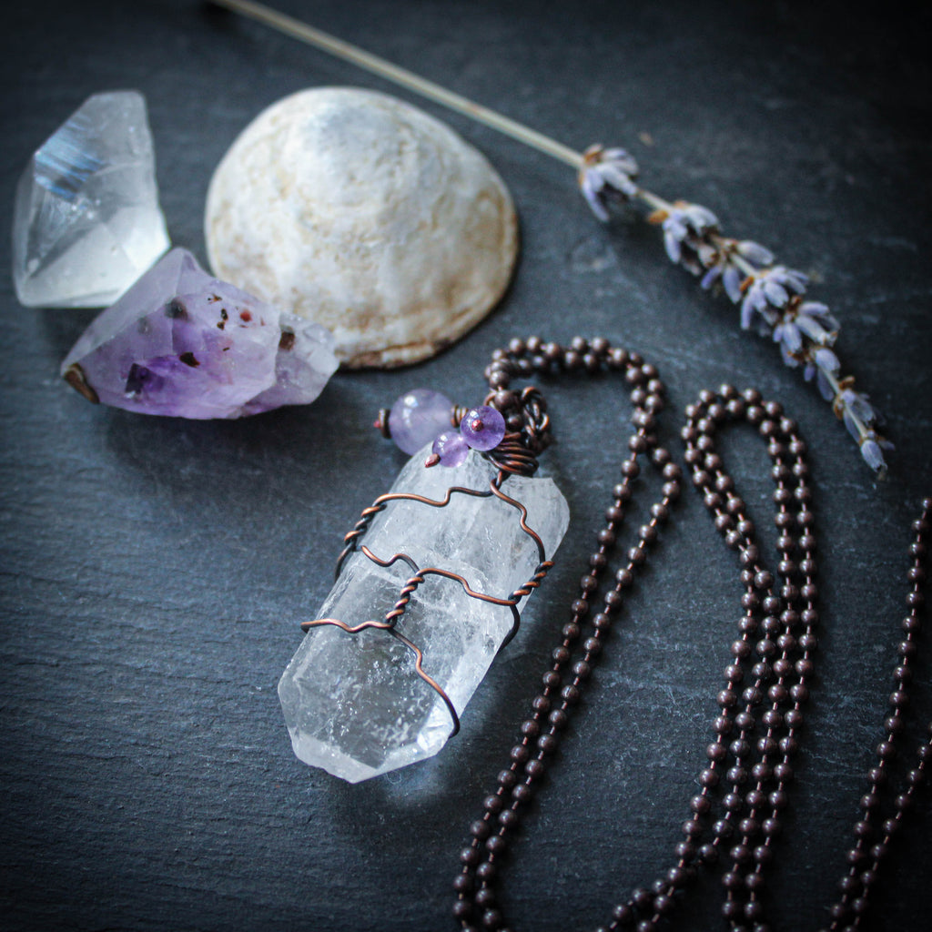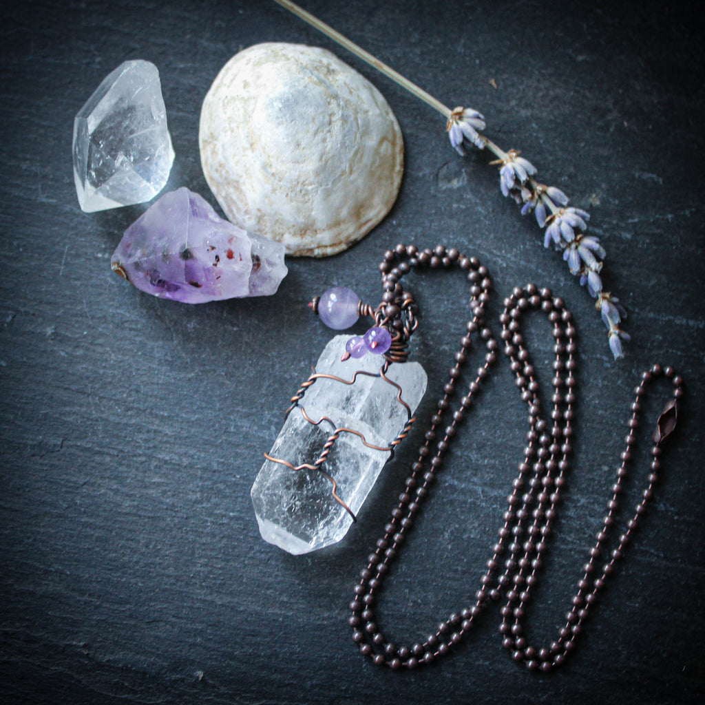 - A raw crystal quartz pendant, cleansed in moonlight and sacred well water
