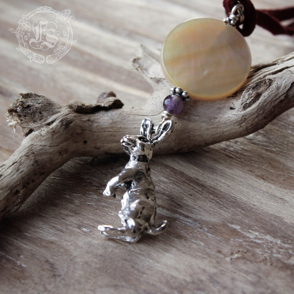 Hare and Moon Pendant Necklace in Silver