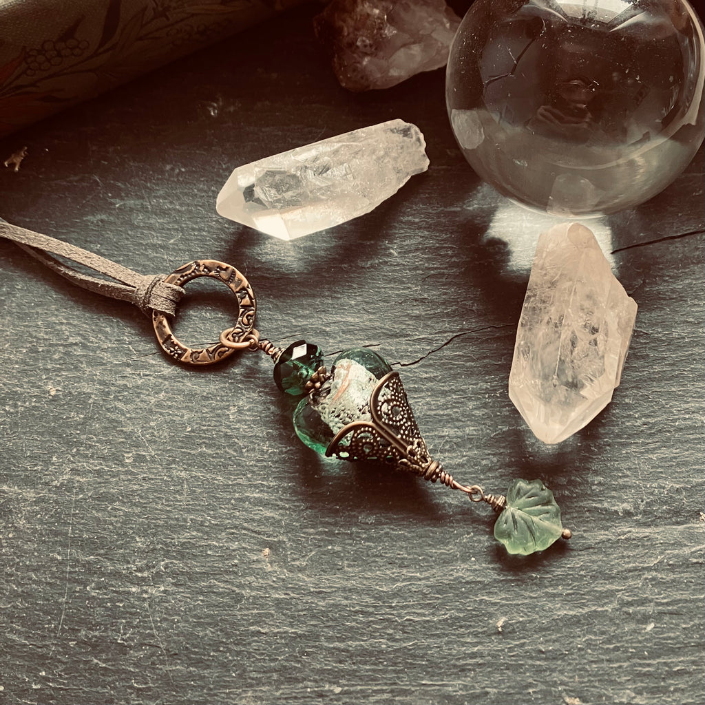 Sea Witches' Heart. Pale Green Lampwork Glass Pendant.