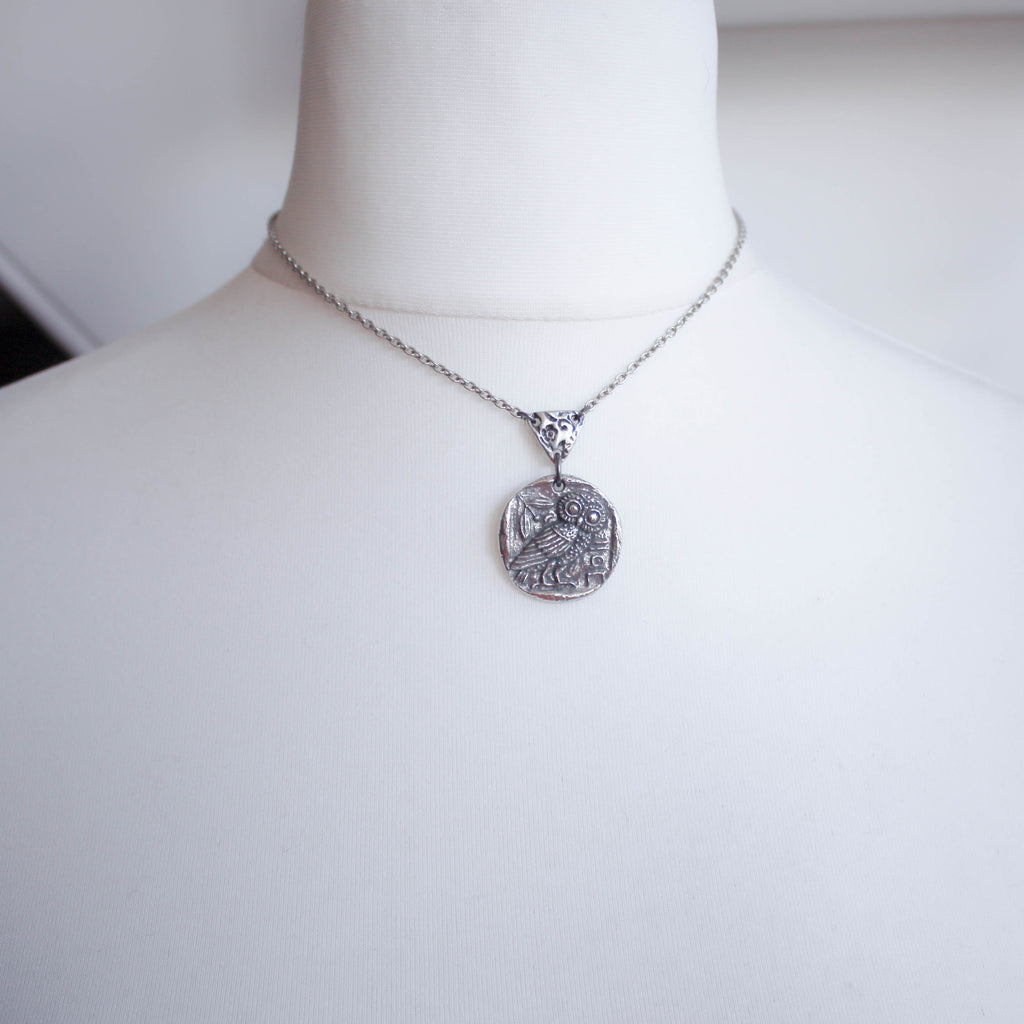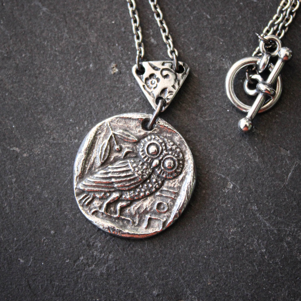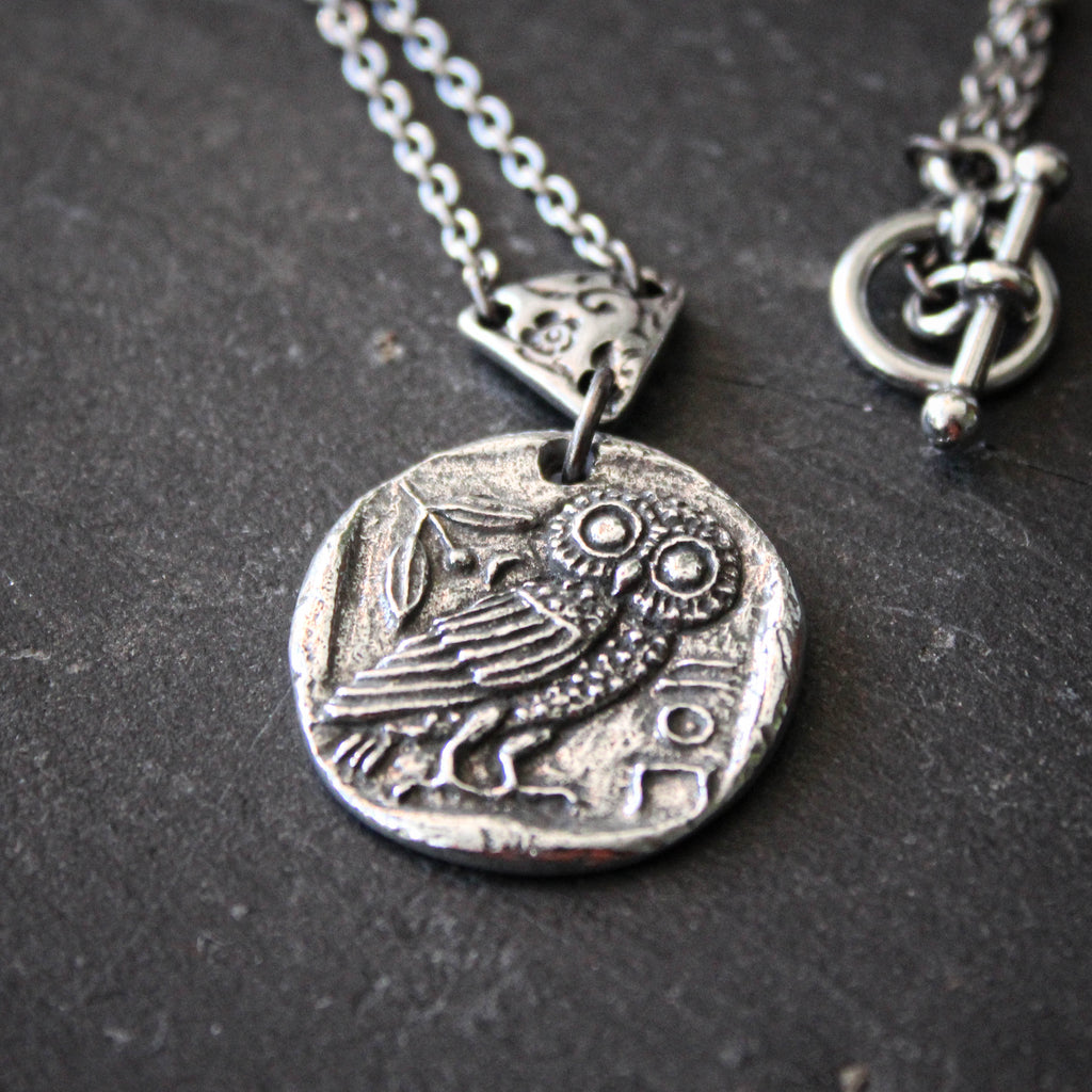Athena's Owl. Ancient Coin Totem Pendent Necklace.