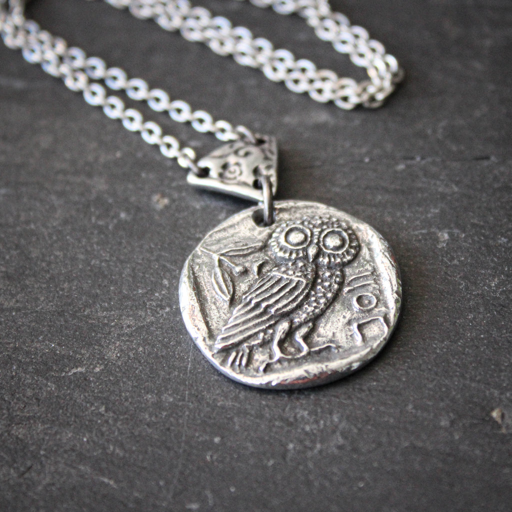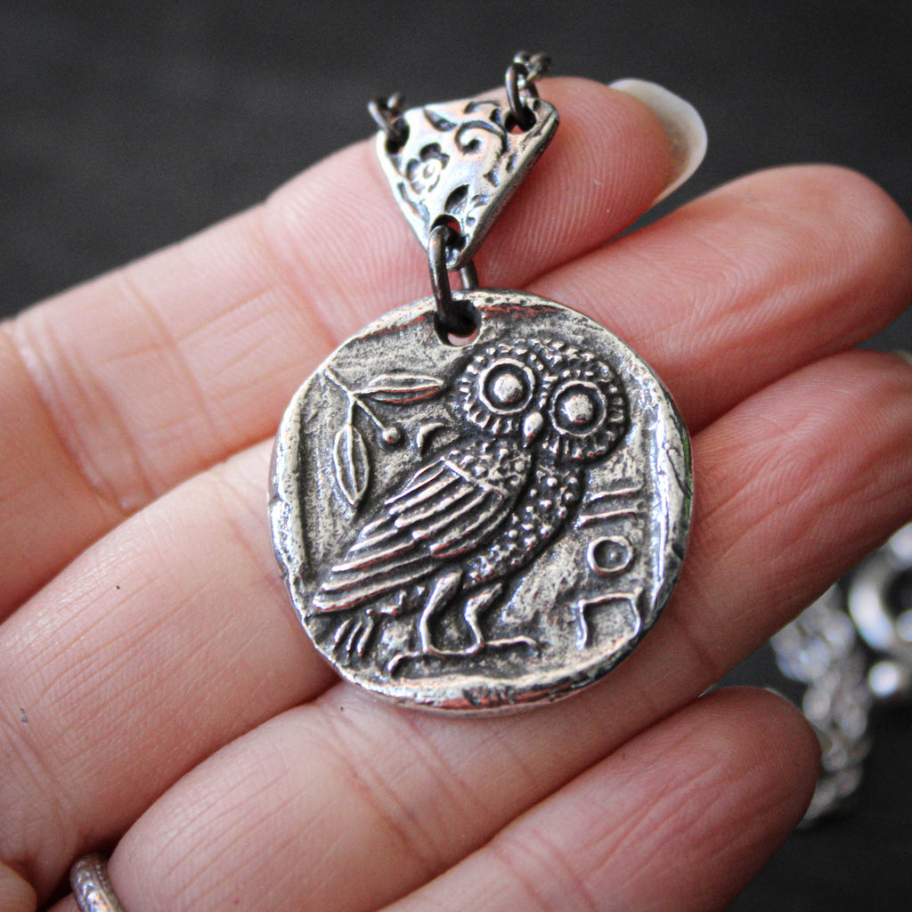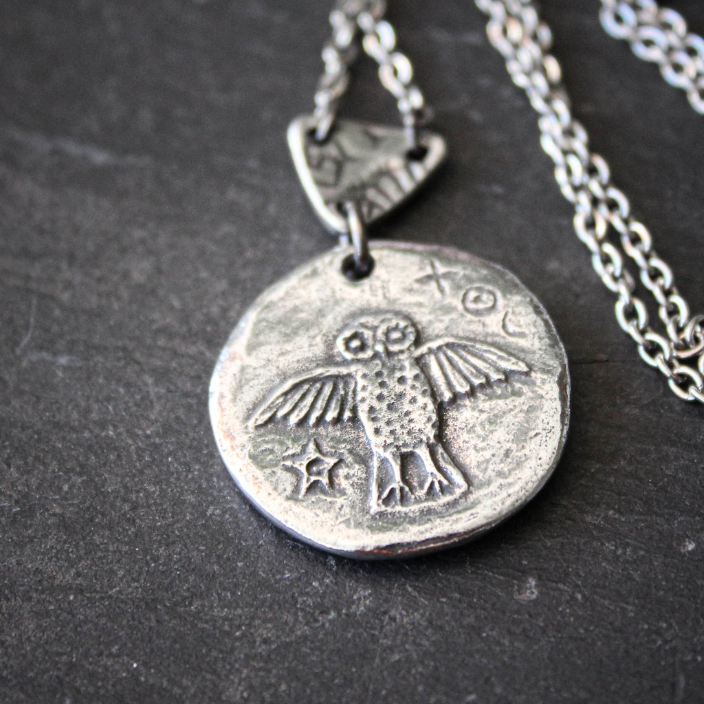 Athena's Owl. Ancient Coin Totem Pendent Necklace.