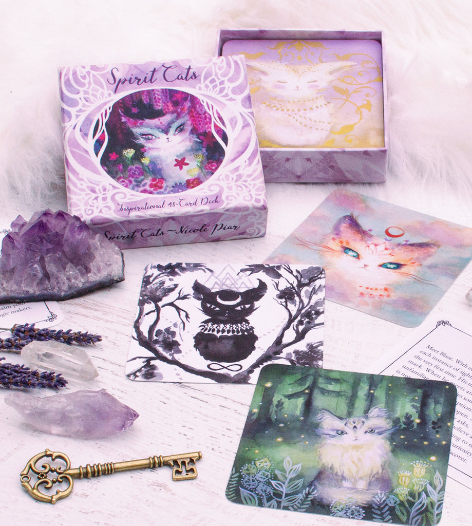 This deck of 48 inspirational cards by artist and writer Nicole Piar feature a hand-painted Spirit Cat printed on one side and a unique healing message on the other. It comes new in shrink wrap.