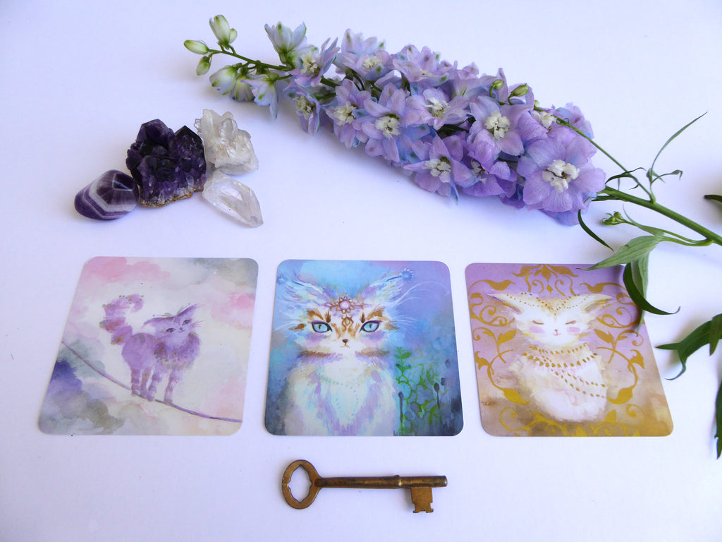 As soon as I used this deck I knew I had to offer it in my shop. The paintings of the cat-spirits have their own sweet energies and the messages on the reverse capture a playful wisdom that is a far cry from the truisms often found in oracle decks. This deck is especially useful for emotional healing and sparking creativity, and can also be useful for daily guidance, to clarify a more elaborate Tarot reading or even for used for a complete reading. A perfect gift for cat lovers, witches, tarot card slingers, or kawaii art lovers.