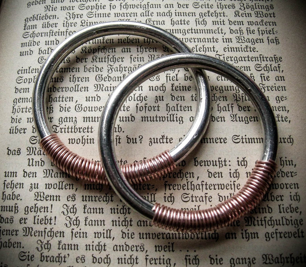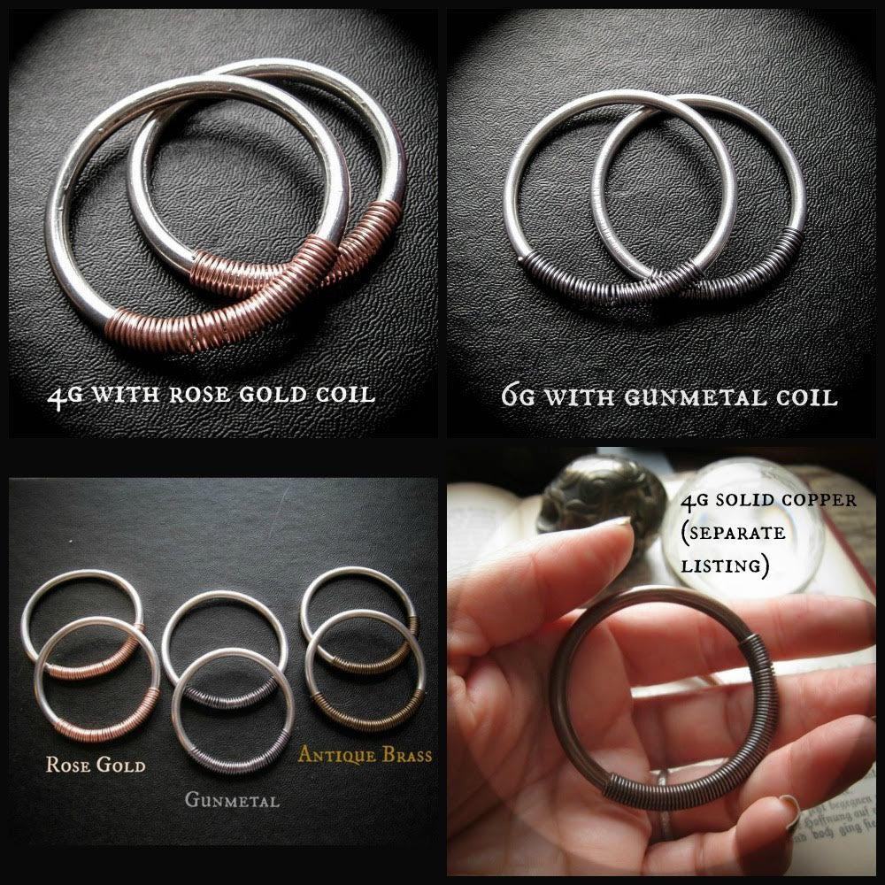 The photo collage shows my slightly thinner, 6g Orbital Hoops available here; I also make this design in heavier-weight solid copper, which you can see here.